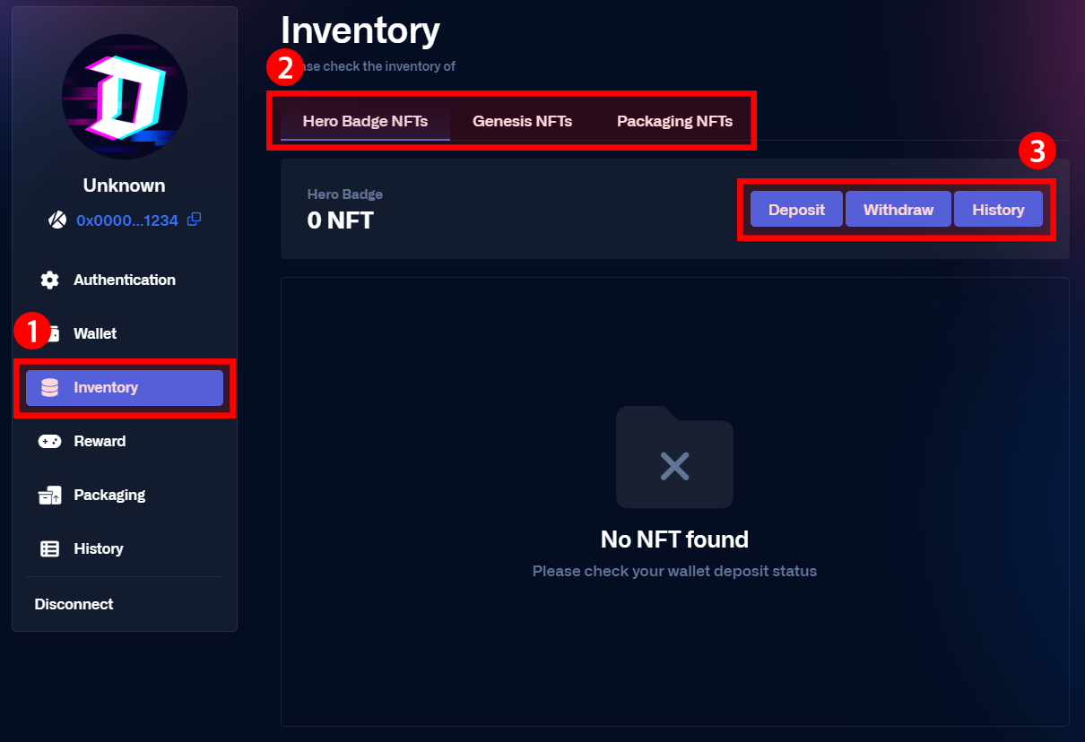 Select the NFT you want to withdraw and click Withdraw button on the bottom left.